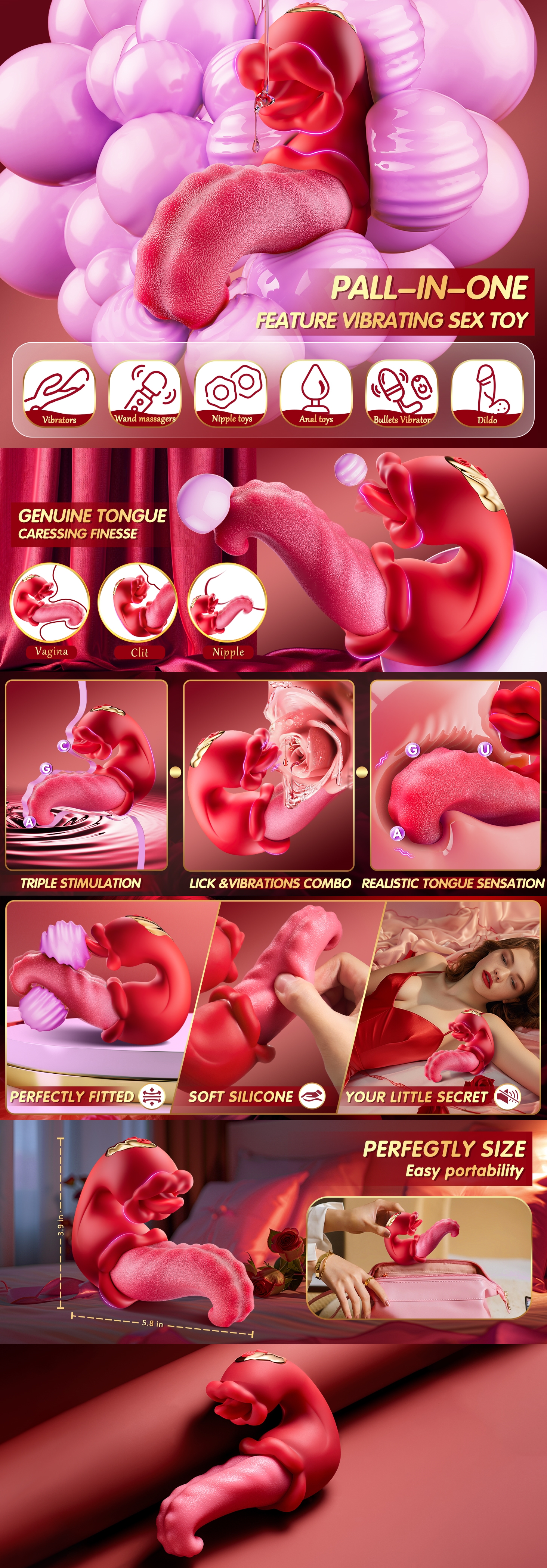 • 【10 Modes Tongue G-Spot Vibrator Sex Toys】Unlike other female sex toys or dildos, it doesn't just simulate tongue licking; it also imitates the realistic actions of tongue licking and swirling. Offering multiple realistic sex sensations, this vibrator provides triple stimulation from inside and out. Explore our range of sexual pleasure tools for women.