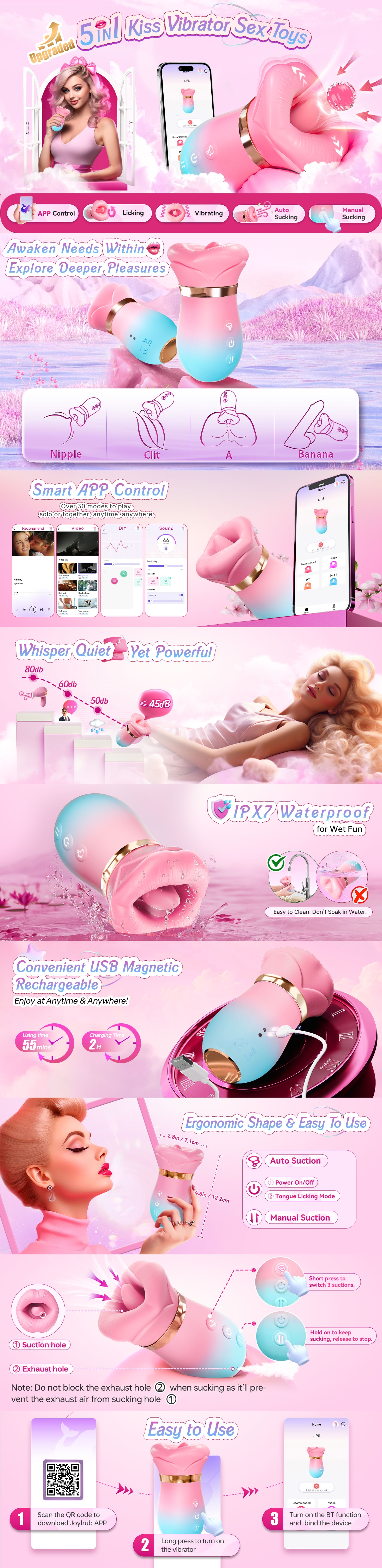 Elevate your sensual experience with this rose-inspired mouth vibrator, crafted for women seeking premium pleasure. Ergonomic design ensures a comfortable grip, while lifelike lip textures mimic real kissing for unparalleled intimacy. The blooming "mouth" flower structure offers a unique, arousing stimulation that blends aesthetics and function.